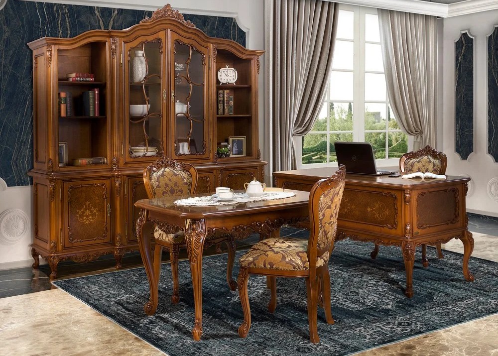Luxusná rustikálna 2 dverová knižnica z masívneho dreva, zdobená ručnou rezbou.