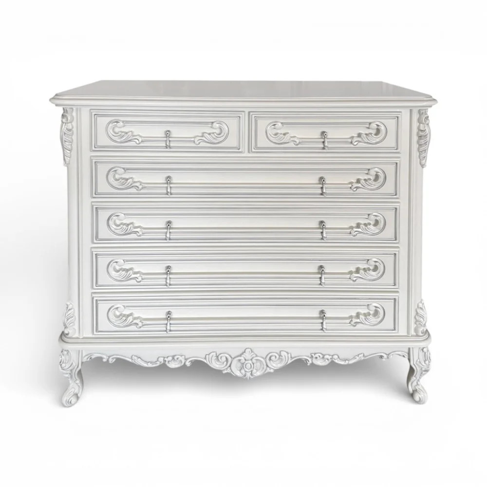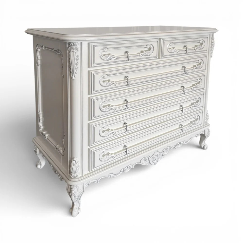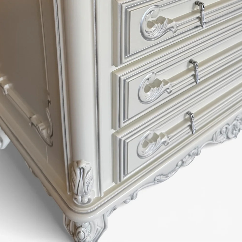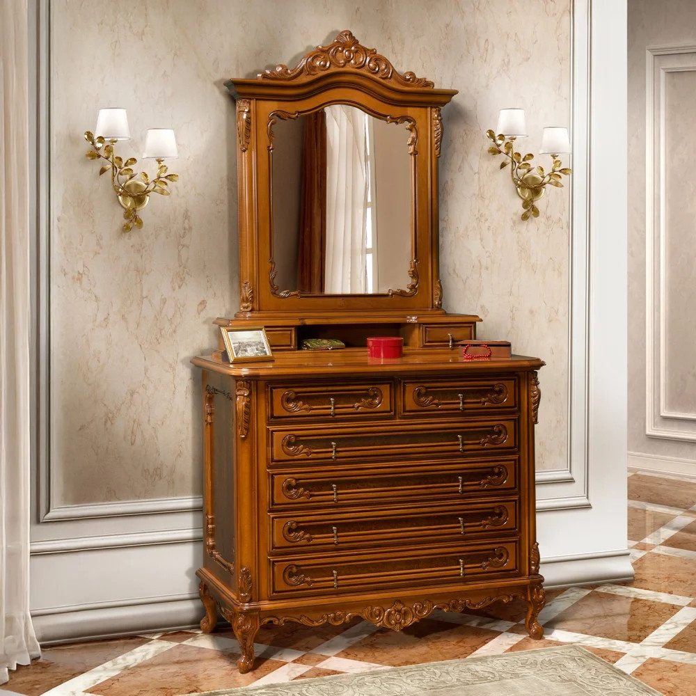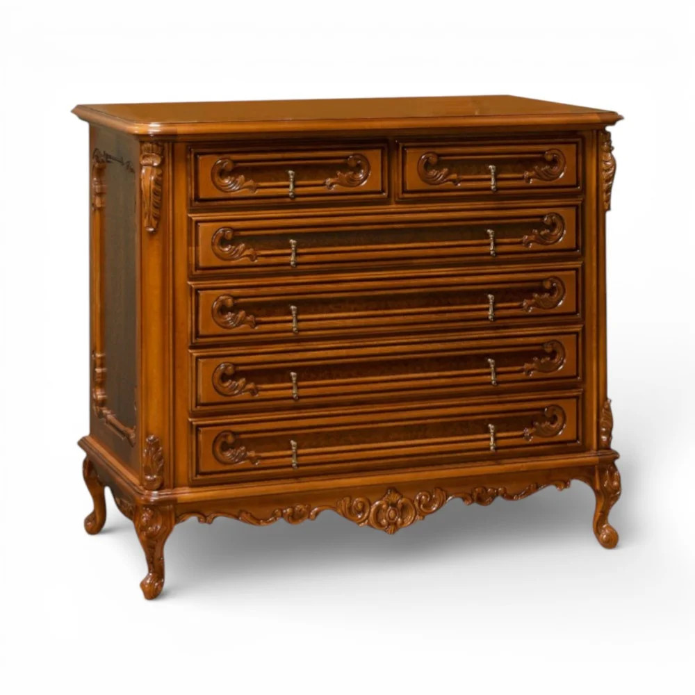 Luxusná rustikálna komoda z masívneho dreva, zdobená ručnou rezbou.