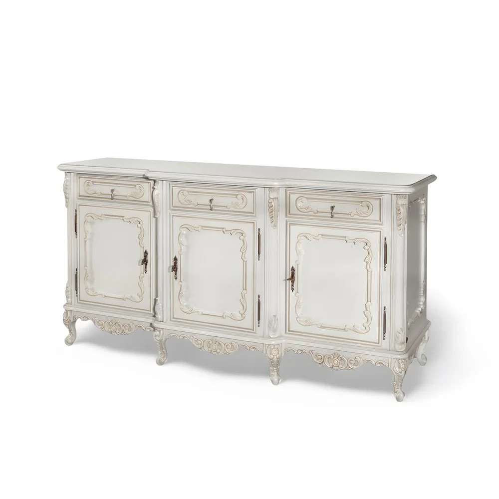 Luxusná rustikálna komoda 3 dverová z masívneho dreva, zdobená ručnou rezbou.
