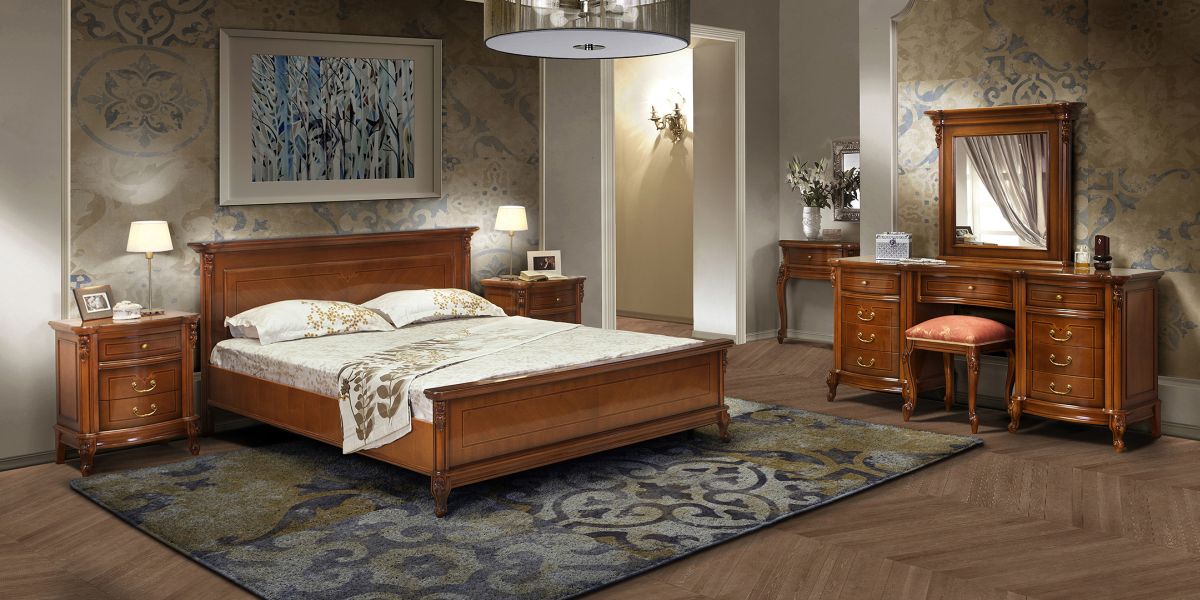 Luxusná rustikálna posteľ z masívneho dreva, zdobená ručnou rezbou.