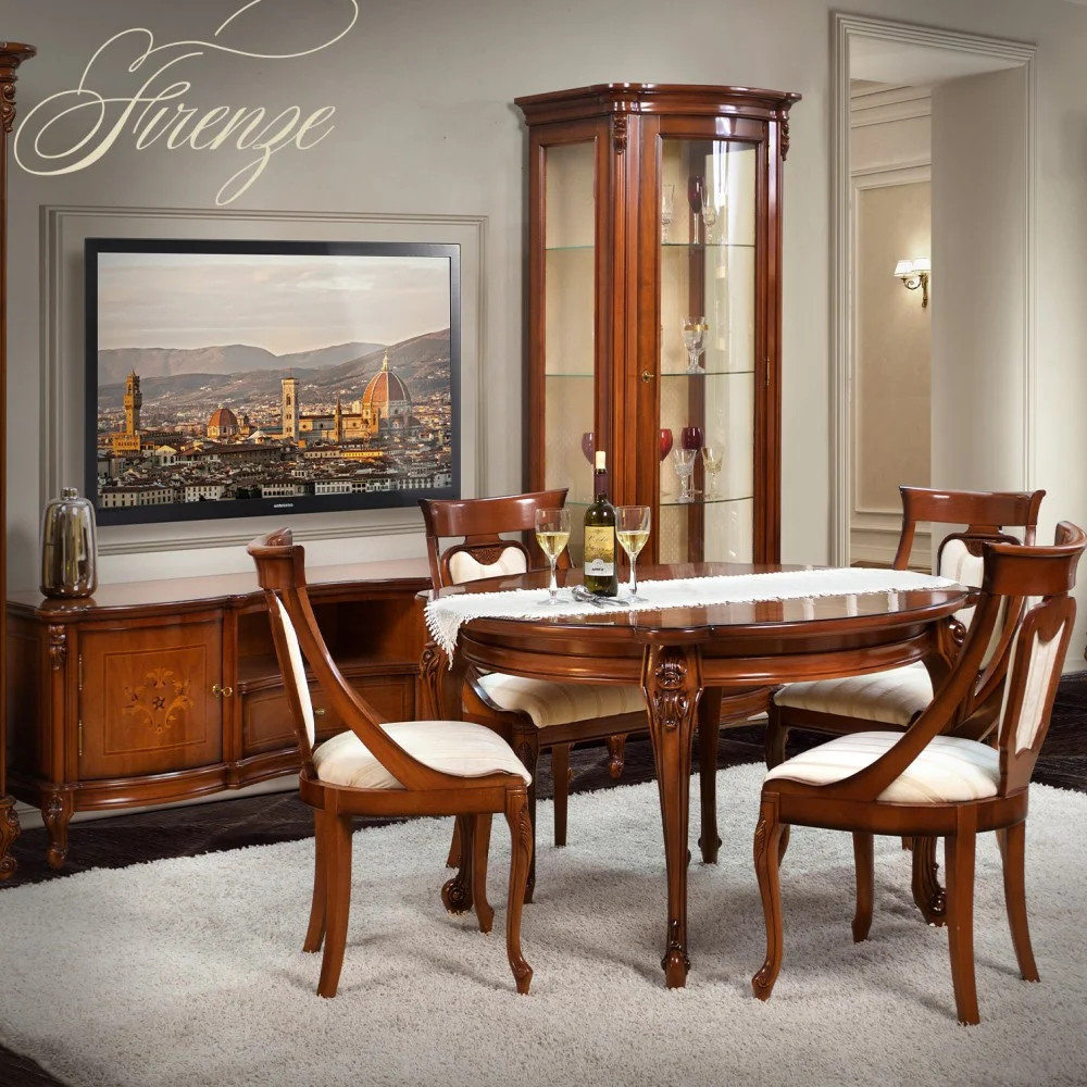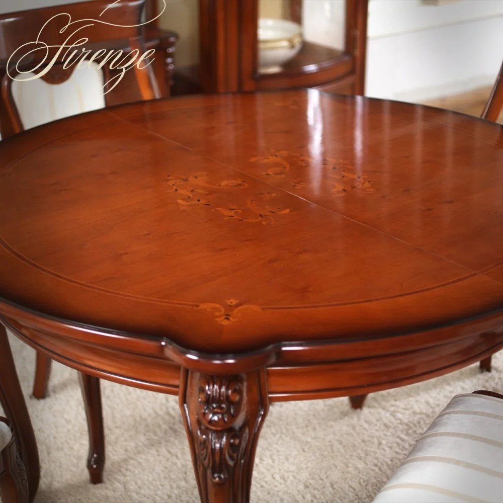 Luxusný rustikálny stôl okrúhly rozťahovací z masívneho dreva, zdobený ručnou rezbou.