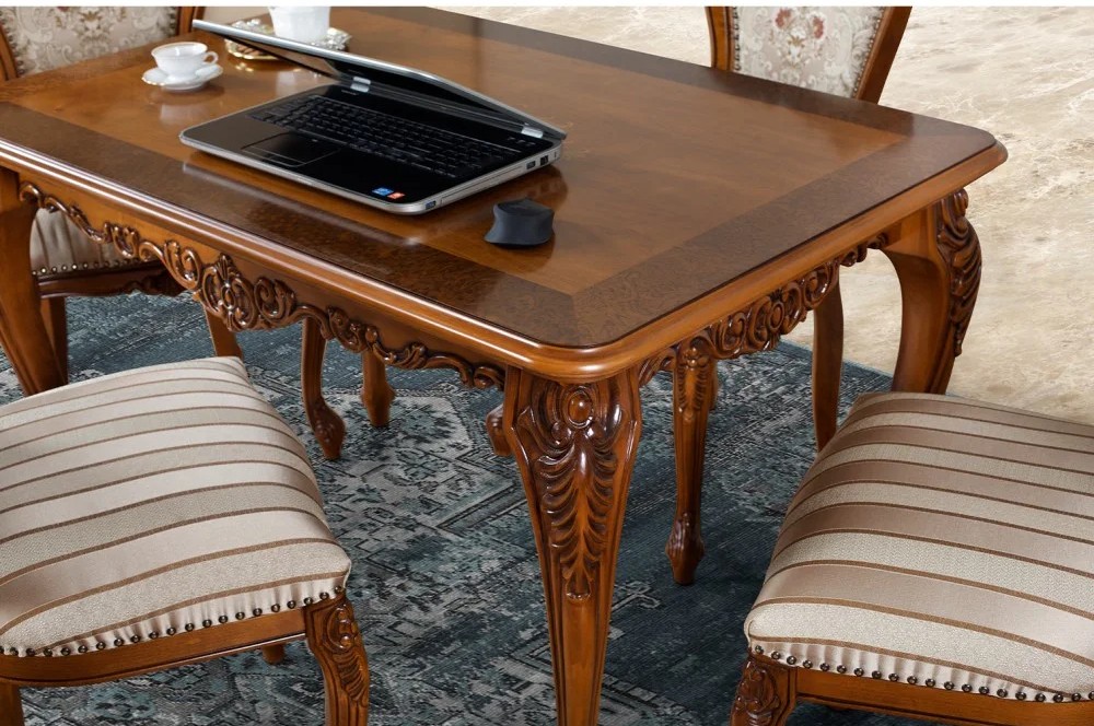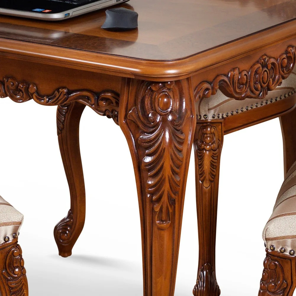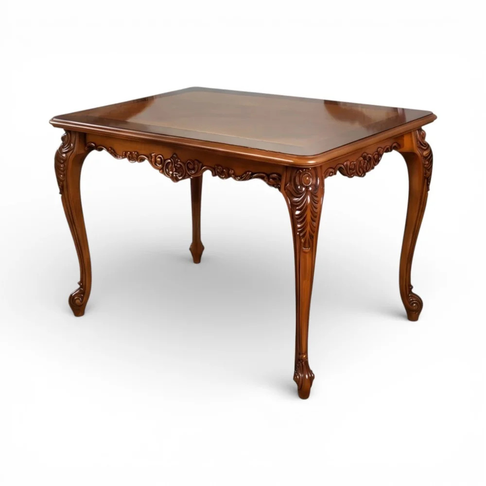 Luxusný rustikálny štvorcový stolík z masívneho dreva, zdobený ručnou rezbou.